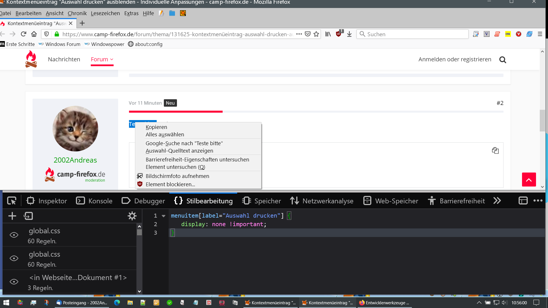 erscheint Im aktuellen Firefox der neue Eintrag "Auswahl drucken".