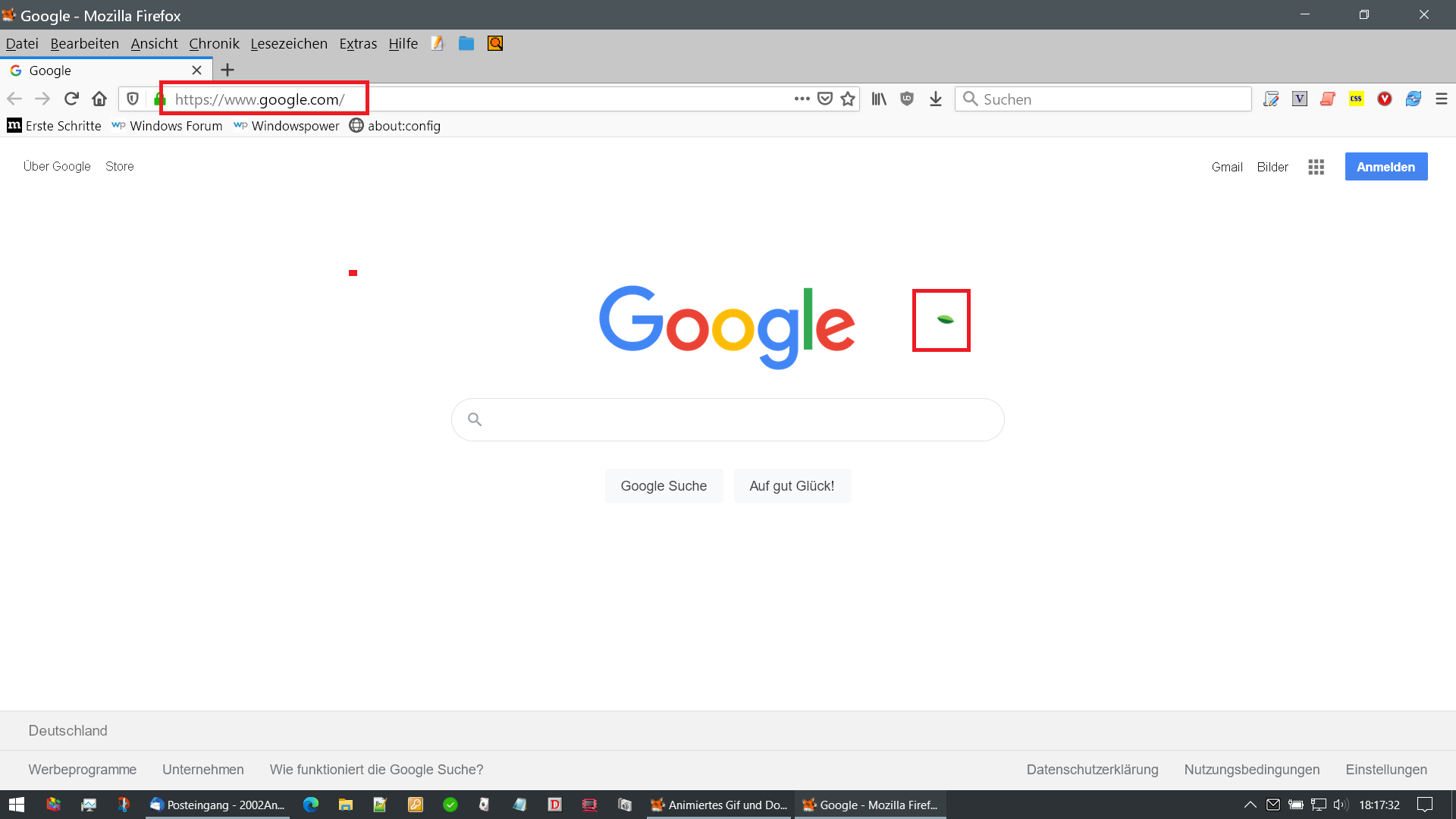 Google ganz normal aussieht und sich nichts bewegt.