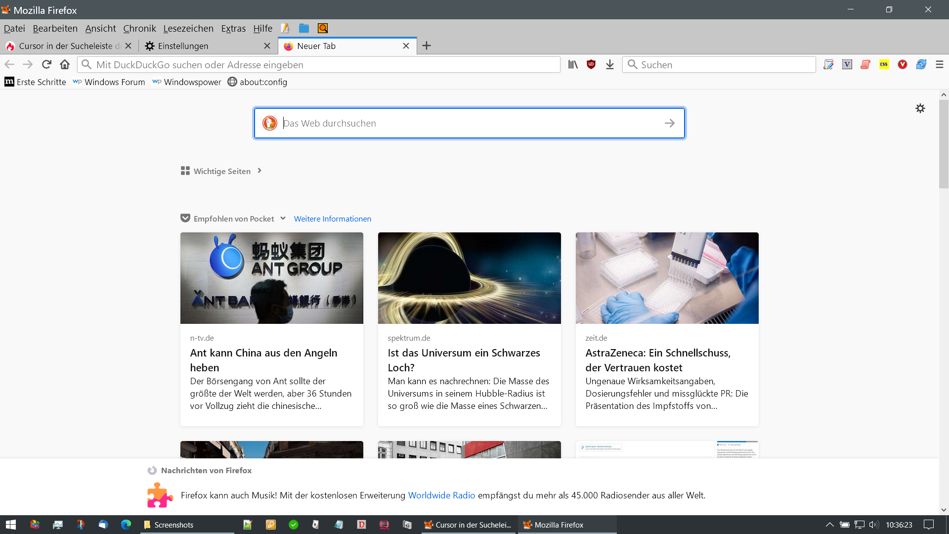 Cursor in der Sucheleiste des Startbildschirms und nicht in der Adressleiste