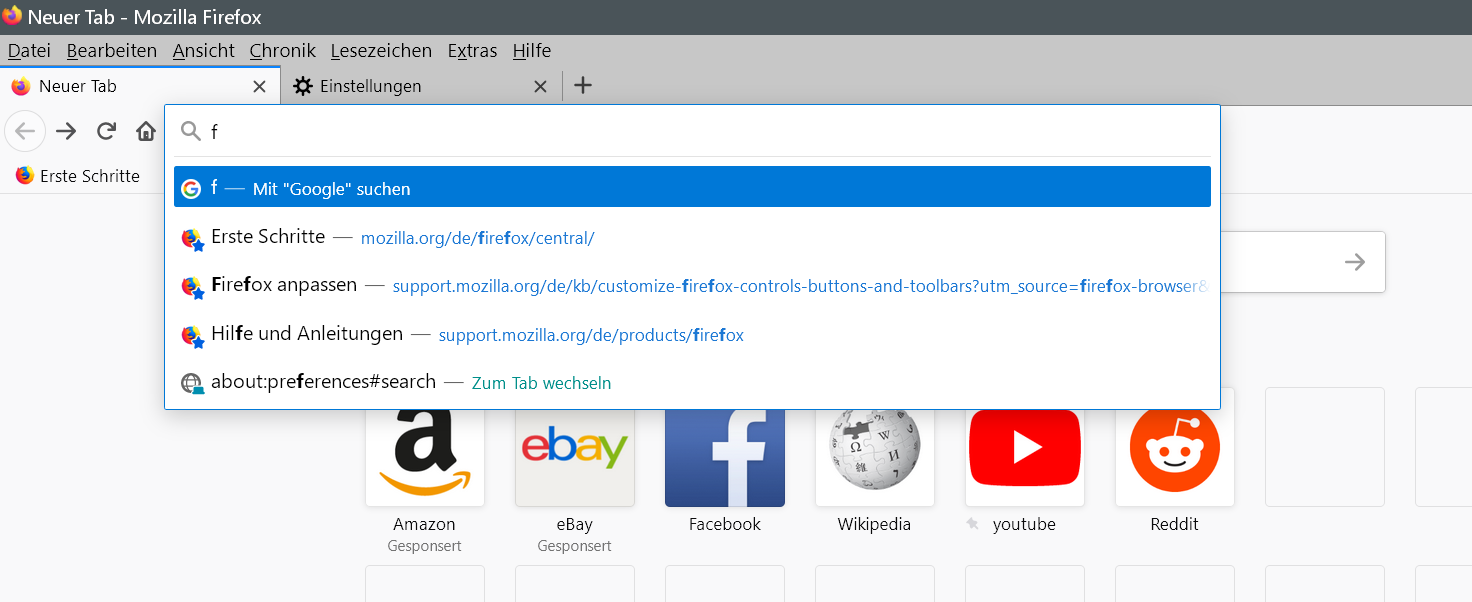 Seit neustem wird dort bei Eingabe des Schlüsselworts bzw. -buchstabens "Suchen mit..." angezeigt: