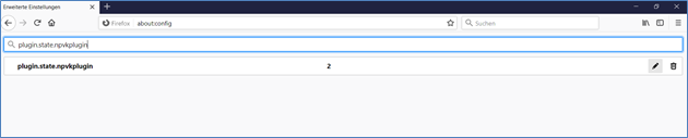 Bei welchen der drei Einstellungen erscheint ein Bearbeitungsstift und bei welchen ein Papierkorb? Eigentlich sollte bei allen ein Papierkorb erscheinen, da sie von Kaspersky eingefügt wurden. Standardmäßig sind sie nicht vorhanden, zumindest bei mir nicht. Bei mir gibt es nur plugin.state.flash.