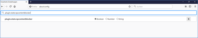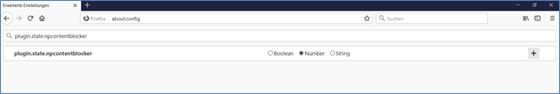 Das heißt, nach hinein kopieren in die Filterzeile auf about:config von z.B. plugin.state.npcontentblocker erscheint nix?