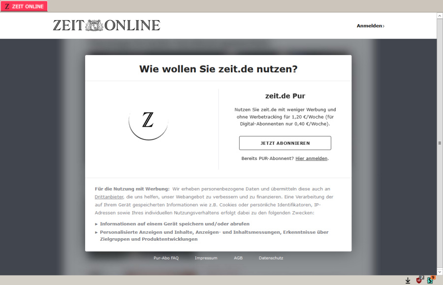 Einblendung bei zeit.de - die 2.te