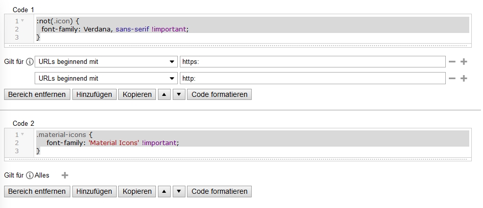 Der 2. Code hat -so glaube ich- bisher bewirkt, dass auch mit Verdana Schaltflächen bzw. Icons korrekt dargestellt werden.
