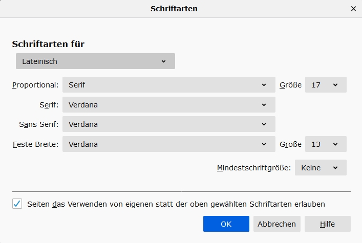 Als Code für Verdana habe ich in Stylus zwei verschiedene