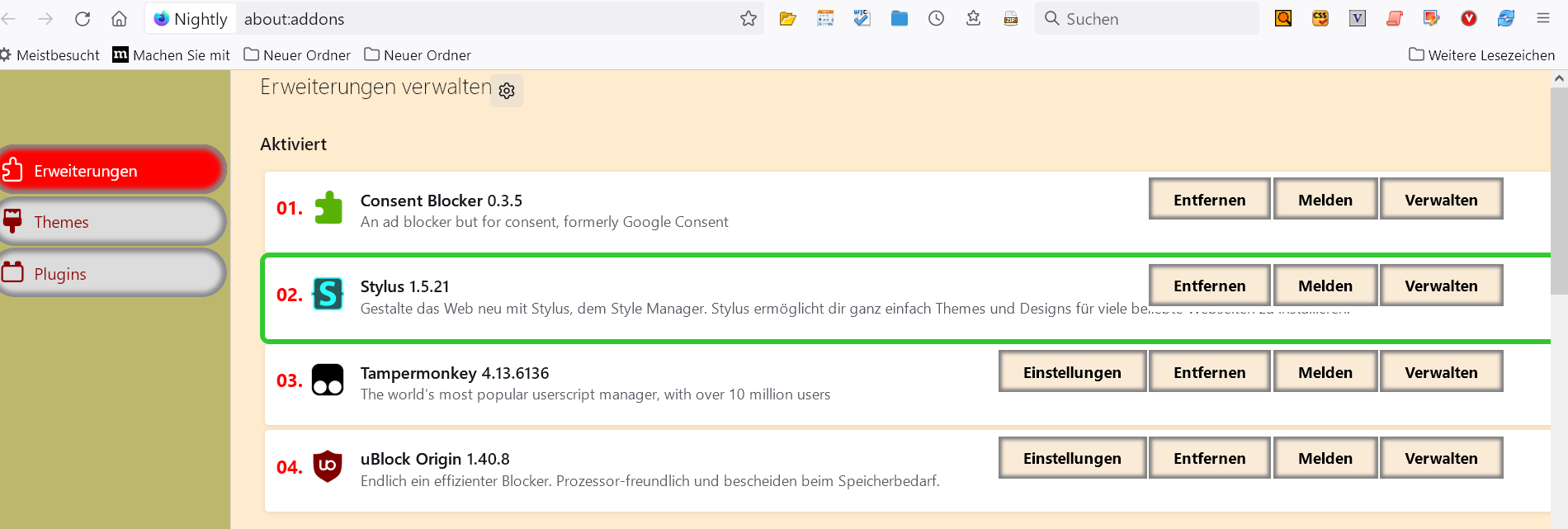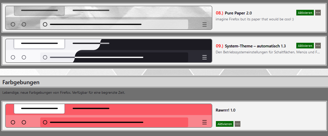 P.S.: In meinem primären Profil ist die Anpassung dafür noch deutlich aufwändiger, denn da sind die aktiven und inaktiven Add-ons deutlich unterschiedlich im Aussehen.