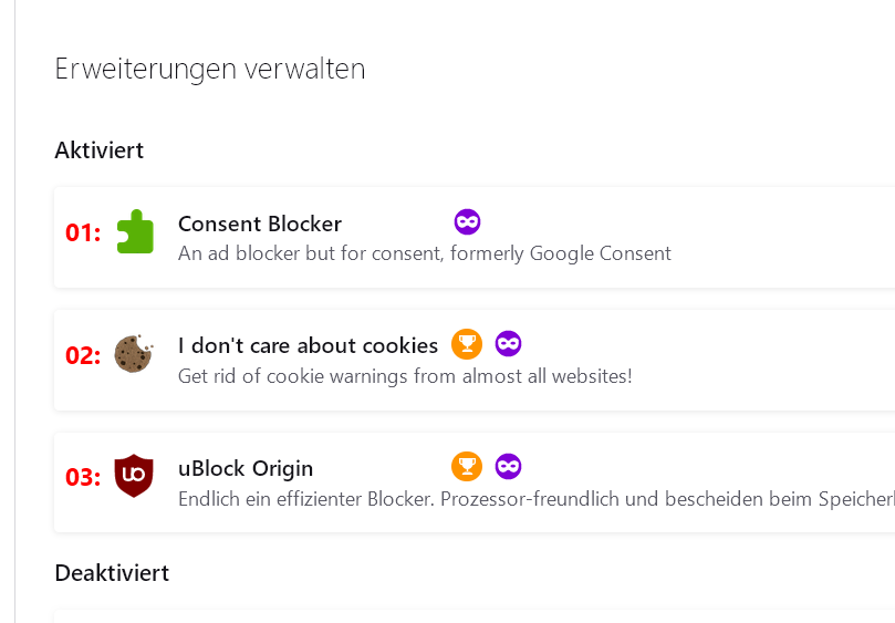 In dem Code von hier RE: Addons-Manager anpassen ist ja noch mal die fortlaufende Nummerierung mit eingebaut. Damit wurde bei mir z.B. unter den deaktivierten Themes keine Anzeige mehr gemacht. Deshalb habe ich das umgebaut mit folgendem Code, eventuell ist es ja von Interesse.