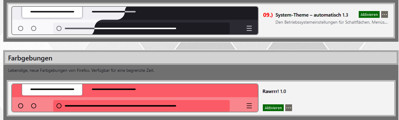P.S.: In meinem primären Profil ist die Anpassung dafür noch deutlich aufwändiger, denn da sind die aktiven und inaktiven Add-ons deutlich unterschiedlich im Aussehen.
