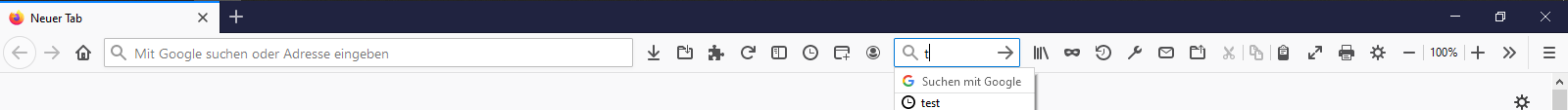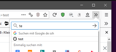 Zb. ich suchte nach dem Wort test und beim nächsten Mal wenn ich nur te eingebe wird das Wort als Vorschlag angezeigt