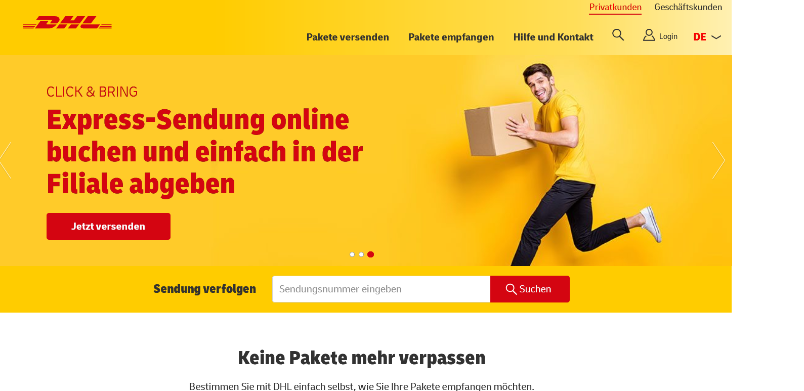 [Erledigt] DHL-Startseite ohne Sendungsverfolgung