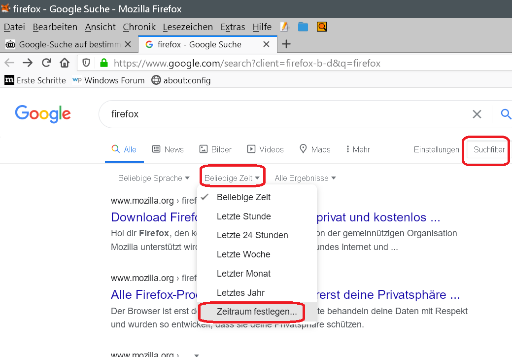 soeben bemerkte ich, dass ich bei Google die Suchergebnisse nicht mehr beliebig zeitlich eingrenzen kann. Ich wollte Suchergebnisse mit dem Datum vom 01.04.2020 bis 31.08.2020 anzeigen lassen. Es funktioniert weder in Firefox noch in Opera. Deshalb vermute ich die Ursache bei Google.