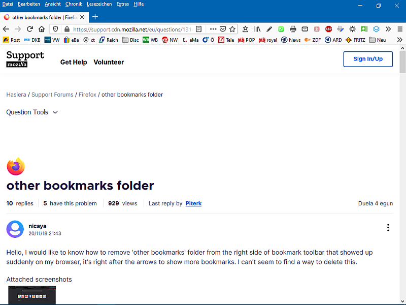 der Text "Weitere Lesezeichen" das führt dazu das weniger Symbole in