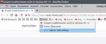 • Dass mit dem neuen Script von aborix Trennlinien nicht mitgezählt werden, soll so sein, also funktioniert alles. Zur Erklärung meines vorherigen Beitrags: Im anderen Thema hattest du exakt den gleichen Screenshot gezeigt und dort war klar zu sehen, dass es in dem Ordner keinen Lesezeichen-Separator gibt. Insofern war der Screenshot hier im Thema irreführend.
