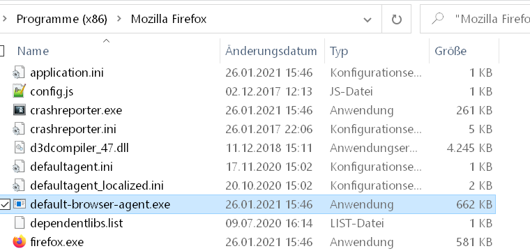 Danke. Bei mir läuft im Hintergrund ein Prozess. Dieser heisst: default-browser-agent.exe im Verzeichnis C:\Program Files (x86)\Mozilla Firefox zu finden. Vielleicht ist er der Übeltäter?!