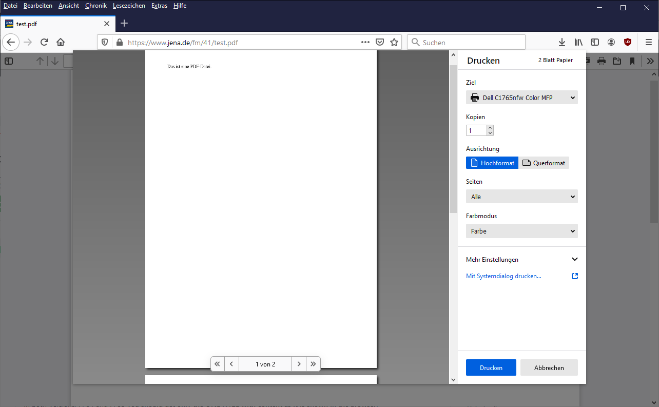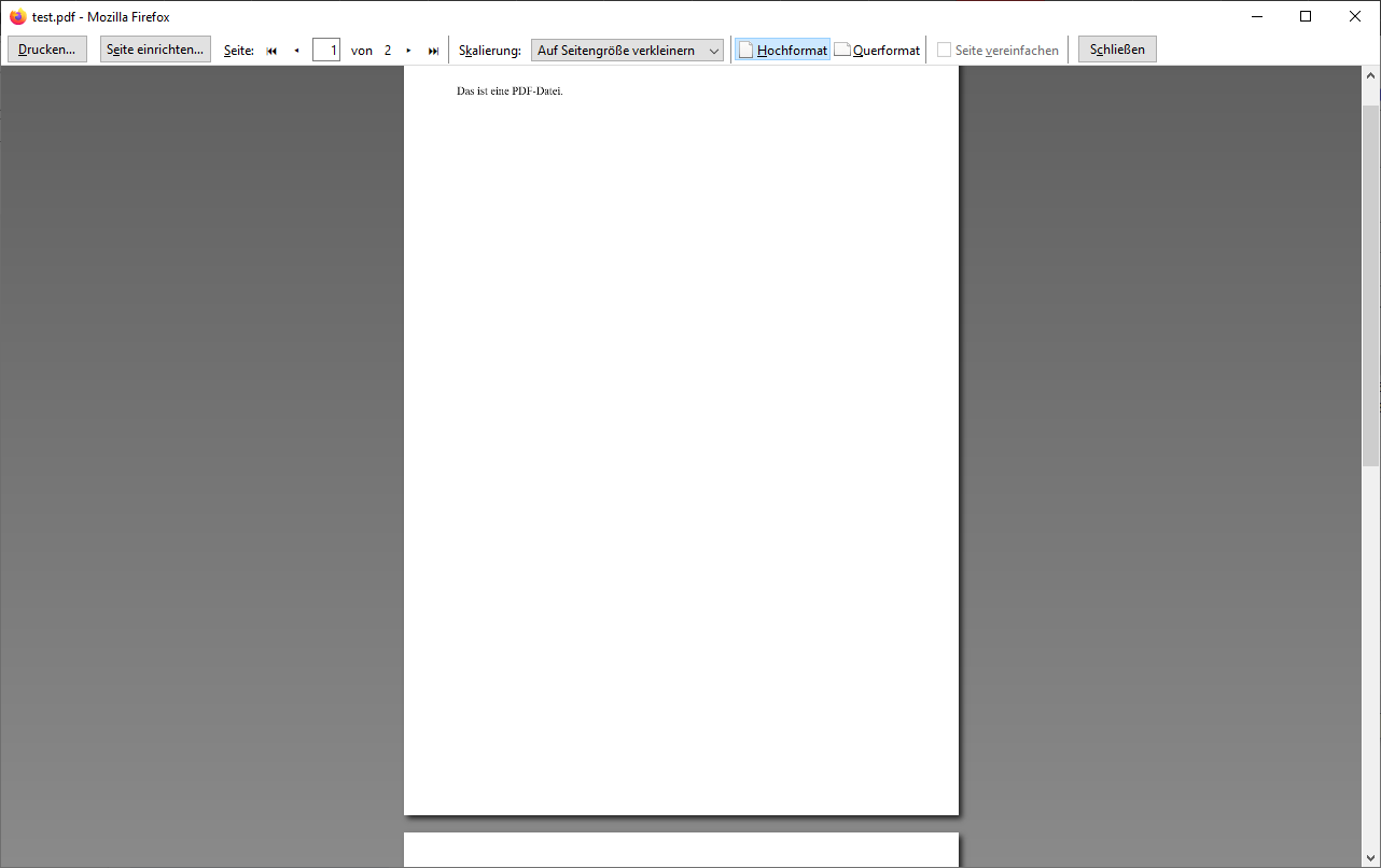 ab Firefox 85 wird zusätzlich eine zweite leere Seite ausgedruckt bei dem Beispiel-pdf