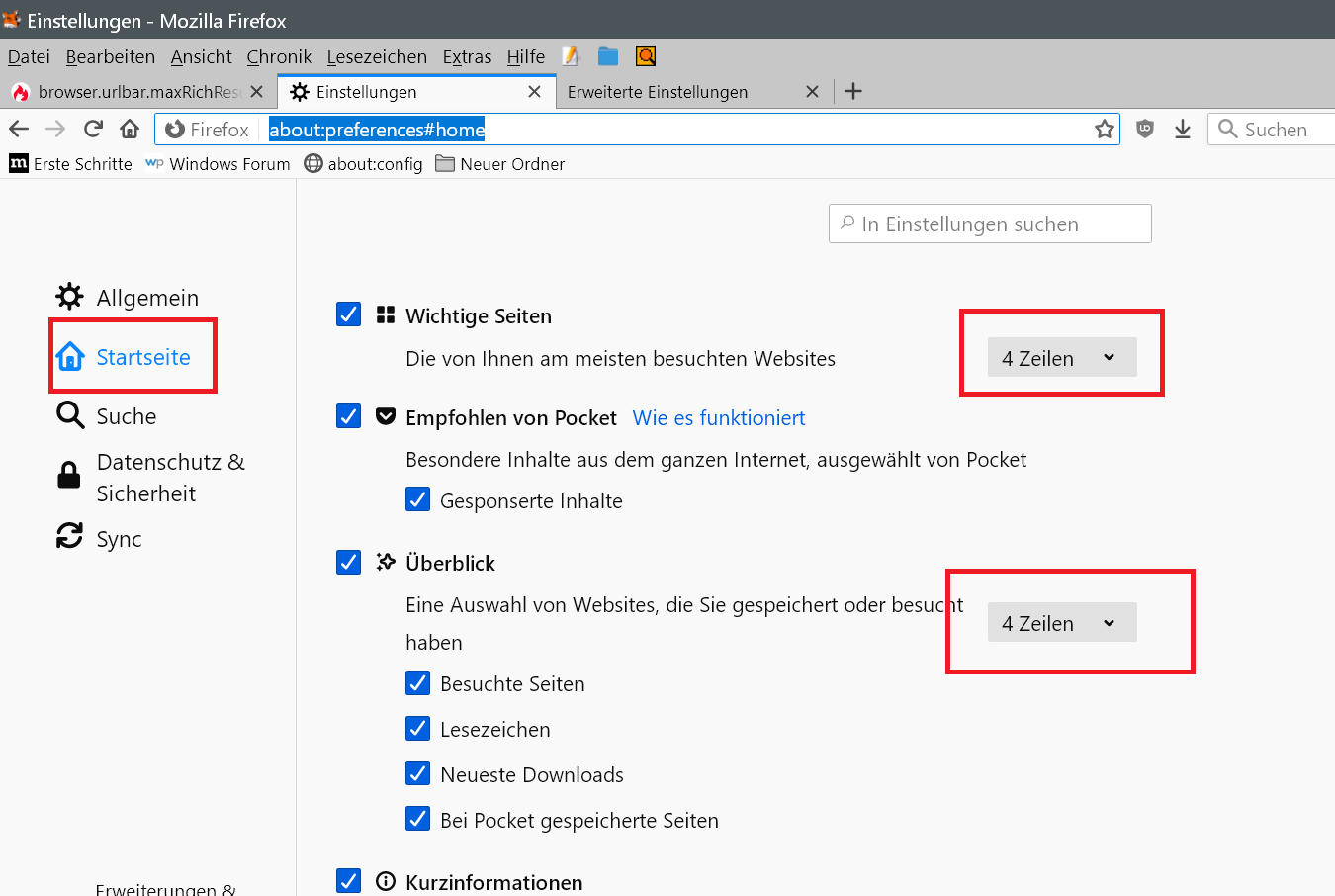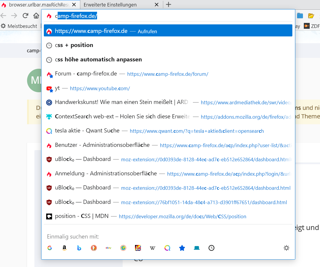 browser.urlbar.maxRichResults ändert nichts