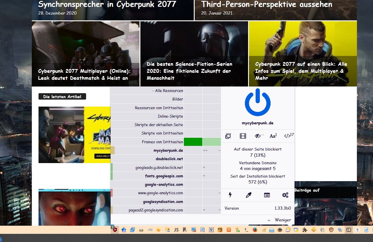ich habe hier eine Webpage, die mir keine Bilder anzeigen wil. Auch wenn ich den FF ohne Addons starte, werden keine Bilder angezeigt. Ist das bei euch genauso? Link: https://mycyberpunk.de/