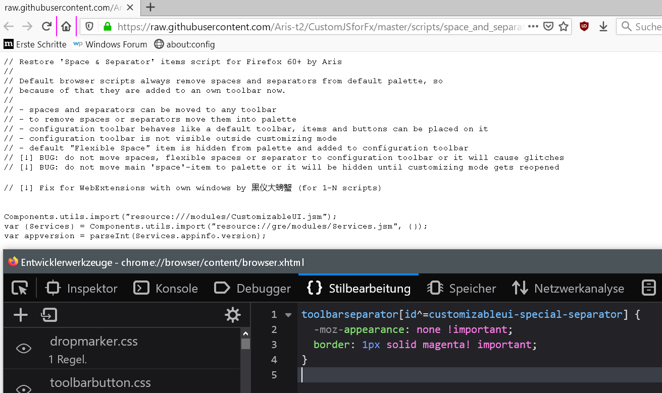 In der Menuleiste und in der LZ-Leiste werden die Separatoren so erzeugt wie es sein soll.
