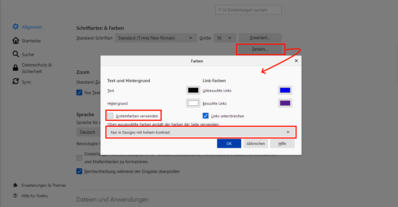 Die Seiten+Grafik-Darstellung ist jetzt total reduziert, alle Schriften mit Links sind von vornerein blau, farbige Flächen werden nicht mehr angezeigt etc. und ich finde einfach nicht heraus, was ich wo falsch eingestellt habe.