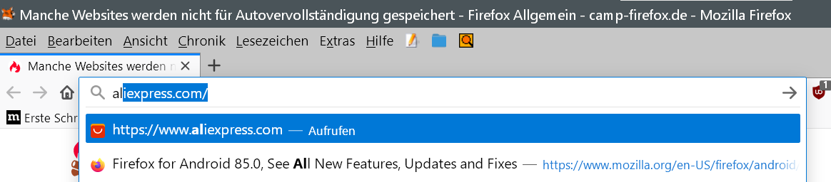 Wieso werden manche Websites nicht für Autovervollständigung gespeichert ? wenn ich z.b. das erste mal heise.de eingebe und dann beim 2. Mal nur "he" schreibe kommt ja direkt heise.de und ich kann Enter drücken. Bei folgenden Seiten z.B. ist das nicht so, egal wie oft ich sie besuche: