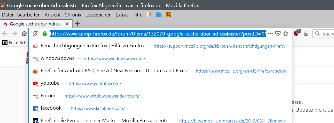 Ich habe schon Angst Firefox zu aktualisieren, es ändert / verkleinert meine gespeicherte Adressen in der Adressleiste.