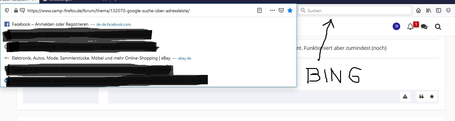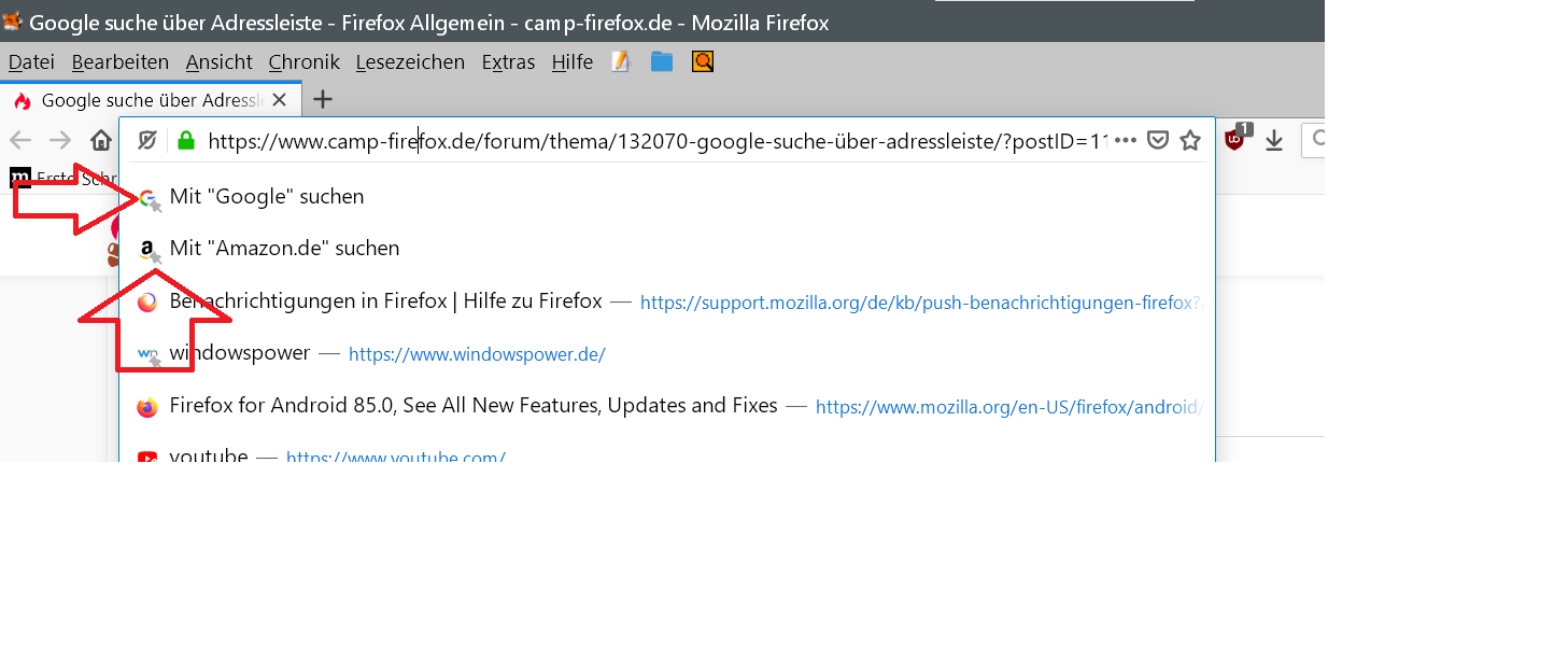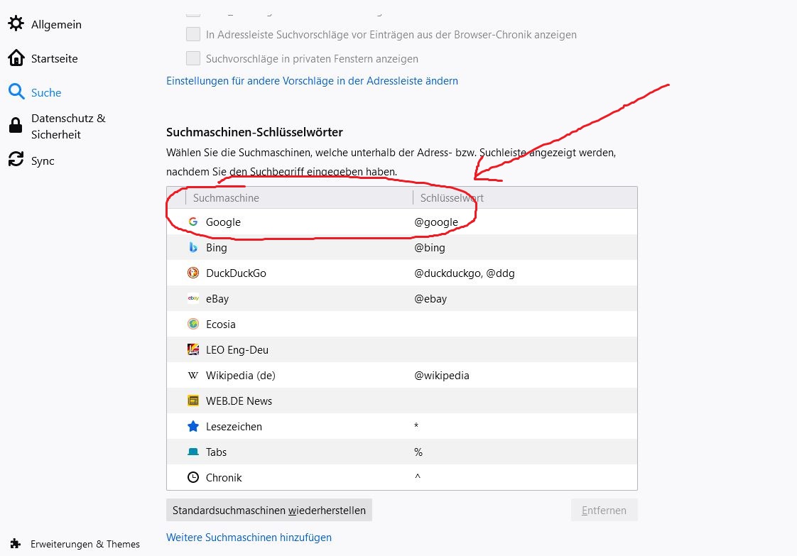 wie kann ich in der (geöffneten) Adressleiste mit "Goggle" suchen entfernen.