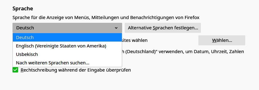 Und da hab ich Deutsch und Usbekisch über "Nach weiteren Sprachen suchen ..." geladen.