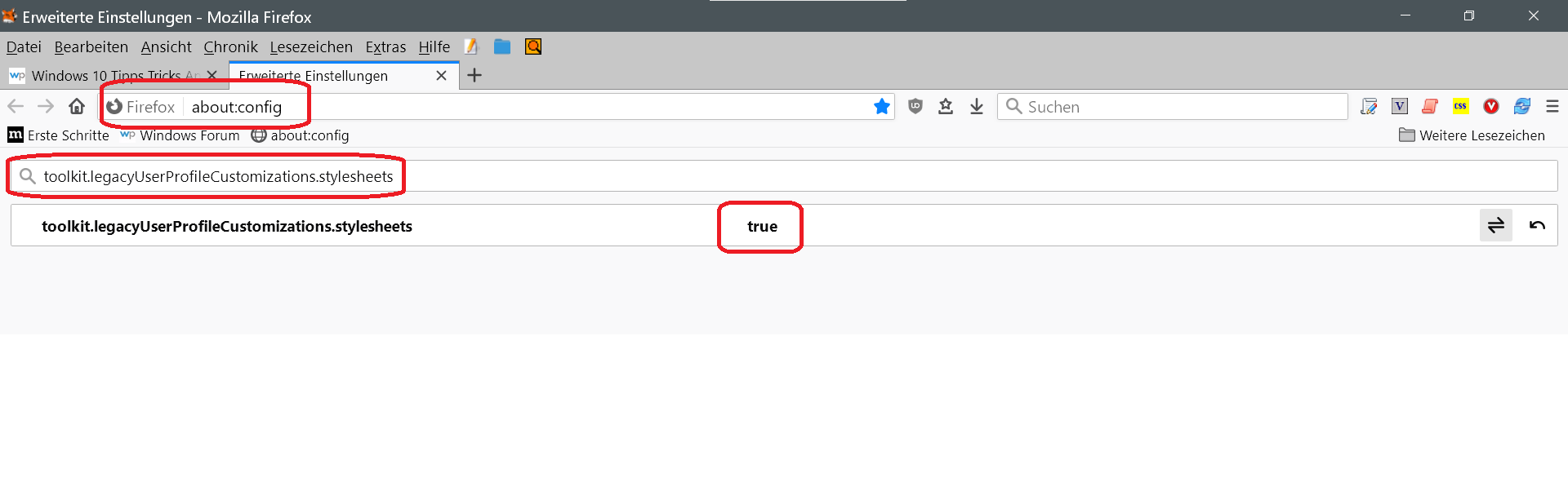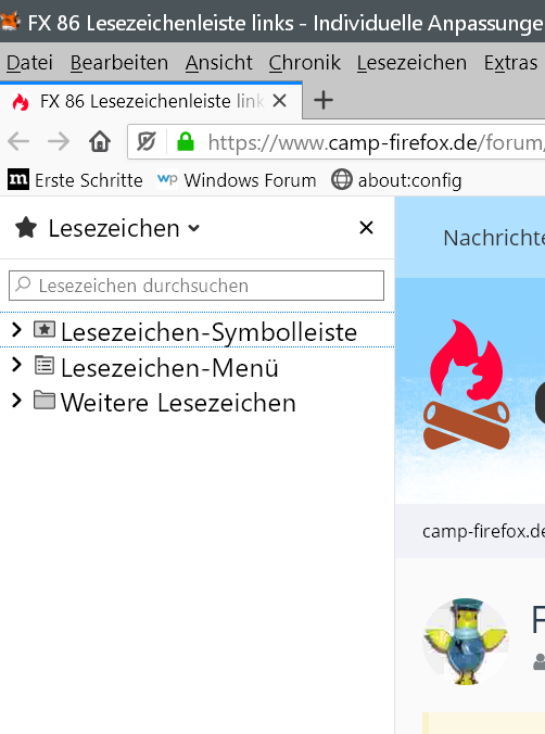 Nach der Einrichtung des Browsers möchte ich jetzt die Schriftgröße der Lesezeichenleiste ändern.