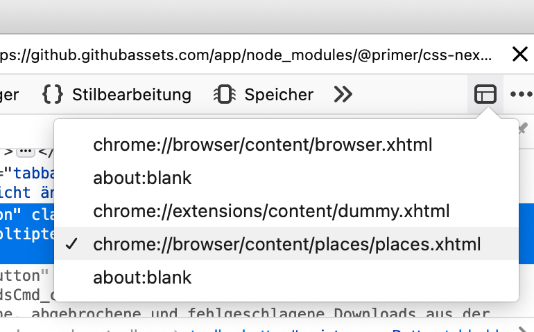 Aber wie komme ich da mit dem Browser-Werkzeug ran? Muss dafür noch etwas aktiviert werden? Momentan komme ich mit dem "Inspector" nicht in die Bibliothek.