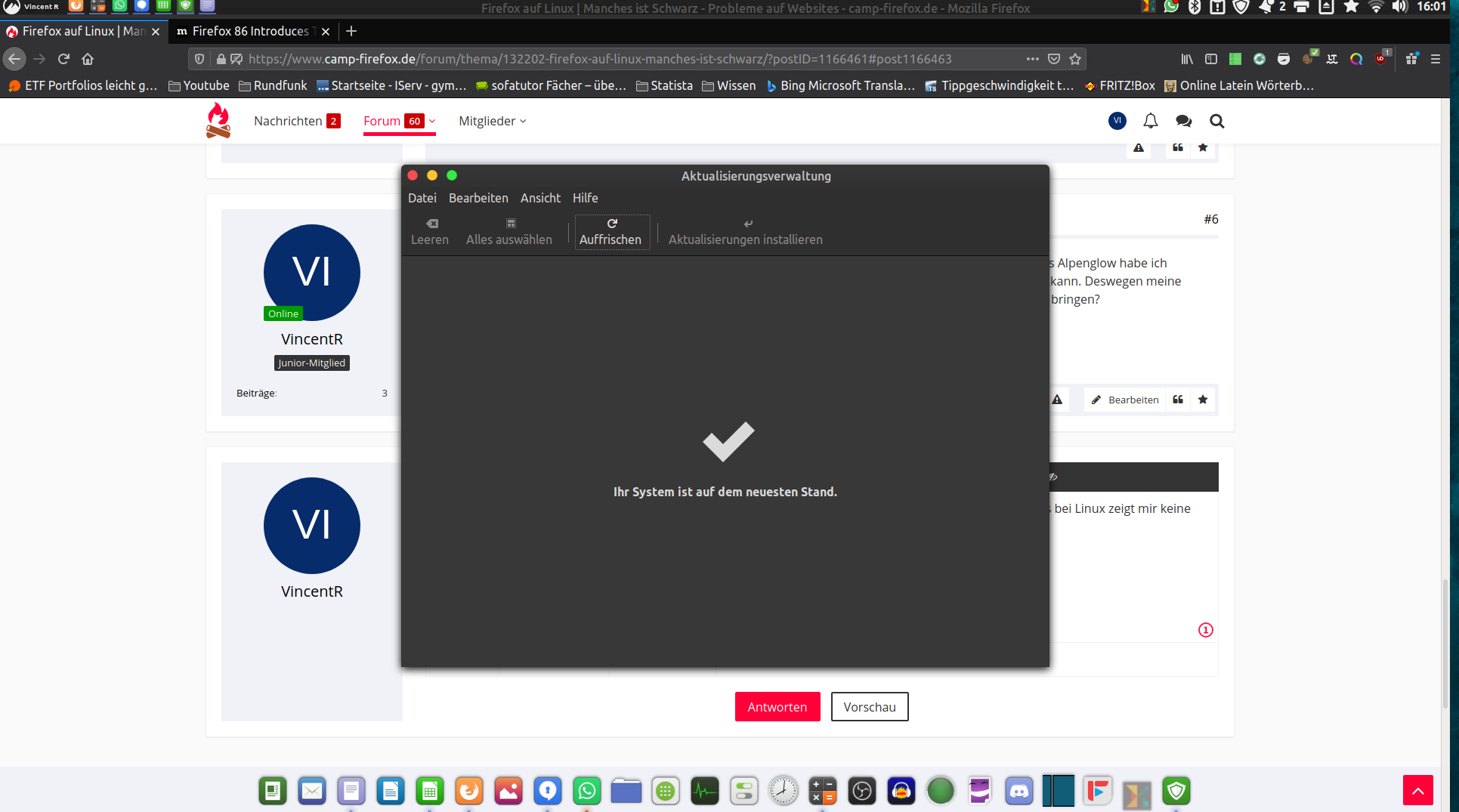 Ich bin mir aber eigentlich ziemlich sicher, dass ich die neuste Version haben sollte. Mein Aktualisierungsdings bei Linux zeigt mir keine Updates an. PS: Ich habe mein Linux so eingestellt, dass es a bit so aussieht wie mac os nicht wundern.