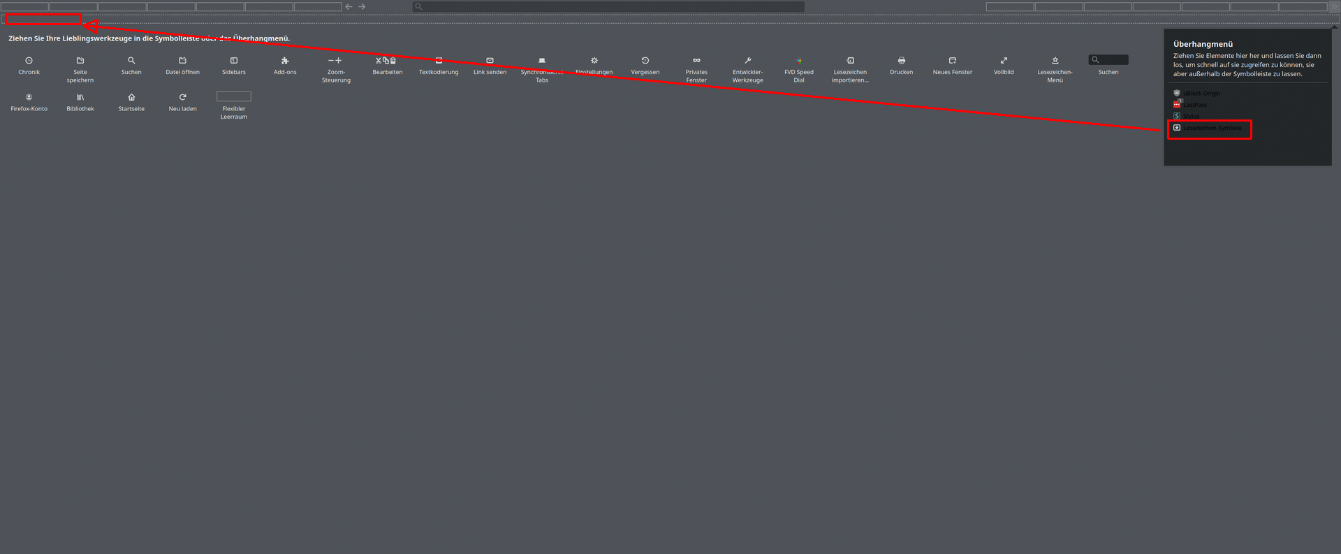 Deine Lesezeichen Symbole sind im Überhangmenü