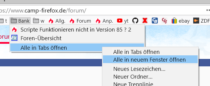 Manchmal/oft will ich alle Bookmarks eines solchen Ordners in einem neuen Fenster öffnen.