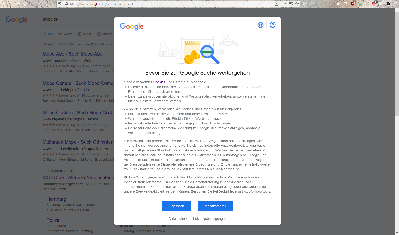 Sämtliche Googlecookies habe ich bereits gelöscht, die setzen sich allerdings einfach neu.