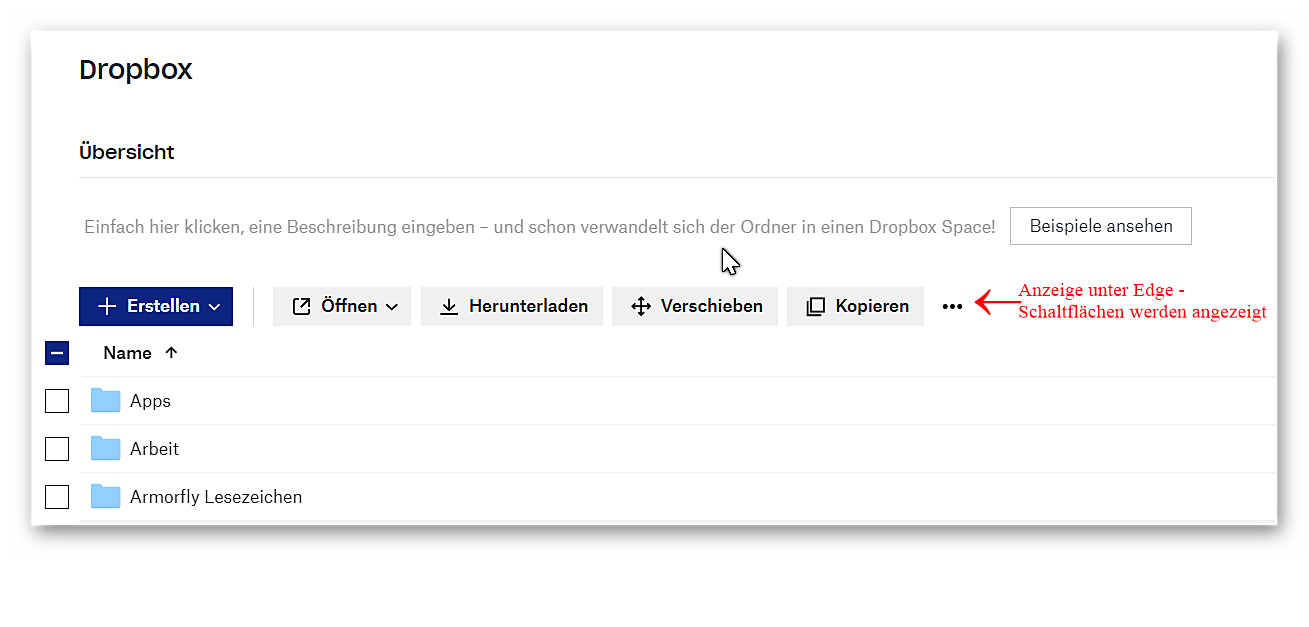 Zum Beispiel unter Dropbox, hier fehlen mir die Schaltflächen zum herunterladen usw. ich hab zur Veranschaulichung mal 2 Grafiken hier mit angehängt, eine wie es unter Firefox aussieht, und eine wie es unter MS Edge aussieht.