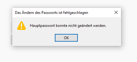 Wenn ich nun das alte, oder auch ein neues Hauptpasswort eingebe, kommt immer die Meldung