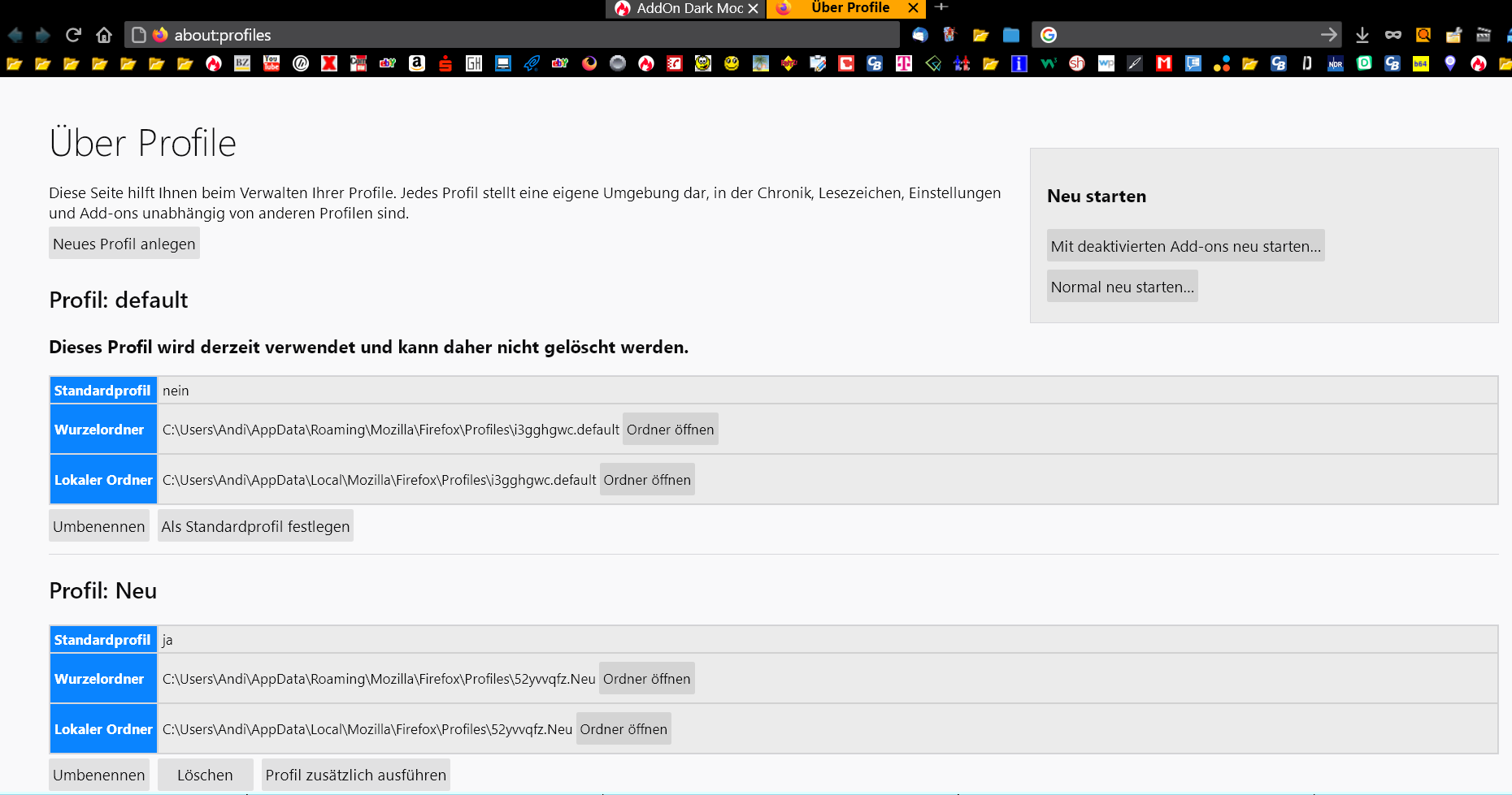 Alles anzeigenAllgemeine Informationen Name Firefox Version 87.0 Build-ID 20210318103112 Distributions-ID Update-Kanal release User-Agent Mozilla/5.0 (Windows NT 10.0; Win64; x64; rv:87.0) Gecko/20100101 Firefox/87.0 Betriebssystem Windows_NT 10.0 19042 Starter-Prozess Aktiviert Fenster mit mehreren Prozessen 1/1 Fission-Fenster 0/1 Standardmäßig deaktiviert Externe Prozesse 7 Unternehmensrichtlinien Inaktiv Google-Location-Service-Schlüssel Gefunden Google-Safebrowsing-Schlüssel Gefunden Mozilla-Location-Service-Schlüssel Gefunden Abgesicherter Modus false Absturzberichte der letzten 3 Tage Meldungs-ID Gesendet Firefox-Funktionen Name Version ID DoH Roll-Out 2.0.0 doh-rollout@mozilla.org Firefox Screenshots 39.0.0 screenshots@mozilla.org Form Autofill 1.0 formautofill@mozilla.org Web Compatibility Interventions 20.1.0 webcompat@mozilla.org WebCompat Reporter 1.4.0 webcompat-reporter@mozilla.org Externe Funktionen bug-1701297-rollout-turn-off-networkjarrecord_failure_reason-release-87-88 active Externe Prozesse Typ Anzahl Webinhalt 3 / 8 about-Seite mit zusätzlichen Rechten 1 Erweiterung 1 Voralloziert 1 GPU 1 Add-ons Name Typ Version Aktiviert ID Amazon.de extension 1.4 true amazon@search.mozilla.org Bing extension 1.3 true bing@search.mozilla.org DuckDuckGo extension 1.1 true ddg@search.mozilla.org eBay extension 1.3 true ebay@search.mozilla.org Ecosia extension 1.0 true ecosia@search.mozilla.org Google extension 1.1 true google@search.mozilla.org LEO Eng-Deu extension 1.0 true leo_ende_de@search.mozilla.org Stylus extension 1.5.17 true {7a7a4a92-a2a0-41d1-9fd7-1e92480d612d} Wikipedia (de) extension 1.1 true wikipedia@search.mozilla.org Adblock Plus - kostenloser Adblocker extension 3.10.2 false {d10d0bf8-f5b5-c8b4-a8b2-2b9879e08c5d} AdBlocker Ultimate extension 3.7.10 false adblockultimate@adblockultimate.net Dark Mode extension 0.4.1 false {174b2d58-b983-4501-ab4b-07e71203cb43} Dark Reader extension 4.9.31 false addon@darkreader.org Grammatik- und Rechtschreibprüfung - LanguageTool extension 3.3.4 false languagetool-webextension@languagetool.org Privacy Badger extension 2021.2.2 false jid1-MnnxcxisBPnSXQ@jetpack Trusted Shops-Erweiterung extension 6.2.8 false jid1-PBNne26X1Kn6hQ@jetpack uBlock Origin extension 1.34.0 false uBlock0@raymondhill.net Sicherheitssoftware Typ Name Antivirus Microsoft Defender Antivirus Antispyware Firewall Windows-Firewall Grafik Allgemeine Merkmale Compositing WebRender Asynchrones Wischen und Zoomen Mausrad-Eingabe aktiviert; Ziehen der Bildlaufleiste aktiviert; Tastatur aktiviert; automatischer Bildlauf aktiviert; sanftes Zoomen durch Antippen aktiviert WebGL-1-Treiber: WSI Info EGL_VENDOR: Google Inc. (adapter LUID: 000000000000eb21) EGL_VERSION: 1.5 (ANGLE 2.1.14225 git hash: 3778168311ca) EGL_EXTENSIONS: EGL_EXT_create_context_robustness EGL_ANGLE_d3d_share_handle_client_buffer EGL_ANGLE_d3d_texture_client_buffer EGL_ANGLE_surface_d3d_texture_2d_share_handle EGL_ANGLE_query_surface_pointer EGL_ANGLE_window_fixed_size EGL_ANGLE_keyed_mutex EGL_ANGLE_surface_orientation EGL_ANGLE_direct_composition EGL_NV_post_sub_buffer EGL_KHR_create_context EGL_EXT_device_query EGL_KHR_image EGL_KHR_image_base EGL_KHR_gl_texture_2D_image EGL_KHR_gl_texture_cubemap_image EGL_KHR_gl_renderbuffer_image EGL_KHR_get_all_proc_addresses EGL_KHR_stream EGL_KHR_stream_consumer_gltexture EGL_NV_stream_consumer_gltexture_yuv EGL_ANGLE_flexible_surface_compatibility EGL_ANGLE_stream_producer_d3d_texture EGL_ANGLE_create_context_webgl_compatibility EGL_CHROMIUM_create_context_bind_generates_resource EGL_CHROMIUM_sync_control EGL_EXT_pixel_format_float EGL_KHR_surfaceless_context EGL_ANGLE_display_texture_share_group EGL_ANGLE_display_semaphore_share_group EGL_ANGLE_create_context_client_arrays EGL_ANGLE_program_cache_control EGL_ANGLE_robust_resource_initialization EGL_ANGLE_create_context_extensions_enabled EGL_ANDROID_blob_cache EGL_ANDROID_recordable EGL_ANGLE_image_d3d11_texture EGL_ANGLE_create_context_backwards_compatible EGL_KHR_create_context_no_error EGL_KHR_reusable_sync EGL_EXTENSIONS(nullptr): EGL_EXT_client_extensions EGL_EXT_platform_base EGL_EXT_platform_device EGL_ANGLE_platform_angle EGL_ANGLE_platform_angle_d3d EGL_ANGLE_platform_angle_d3d11on12 EGL_ANGLE_device_creation EGL_ANGLE_device_creation_d3d11 EGL_ANGLE_experimental_present_path EGL_KHR_client_get_all_proc_addresses EGL_KHR_debug EGL_ANGLE_explicit_context EGL_ANGLE_feature_control IsWebglOutOfProcessEnabled: 1 WebGL-1-Treiber: Renderer Google Inc. -- ANGLE (NVIDIA GeForce RTX 2080 Ti Direct3D11 vs_5_0 ps_5_0) WebGL-1-Treiber: Version OpenGL ES 2.0.0 (ANGLE 2.1.14225 git hash: 3778168311ca) WebGL-1-Treiber: Erweiterungen GL_ANGLE_base_vertex_base_instance GL_ANGLE_client_arrays GL_ANGLE_depth_texture GL_ANGLE_explicit_context GL_ANGLE_explicit_context_gles1 GL_ANGLE_framebuffer_blit GL_ANGLE_framebuffer_multisample GL_ANGLE_get_tex_level_parameter GL_ANGLE_instanced_arrays GL_ANGLE_lossy_etc_decode GL_ANGLE_memory_size GL_ANGLE_multi_draw GL_ANGLE_multiview_multisample GL_ANGLE_pack_reverse_row_order GL_ANGLE_program_cache_control GL_ANGLE_provoking_vertex GL_ANGLE_request_extension GL_ANGLE_texture_compression_dxt3 GL_ANGLE_texture_compression_dxt5 GL_ANGLE_texture_usage GL_ANGLE_translated_shader_source GL_CHROMIUM_bind_generates_resource GL_CHROMIUM_bind_uniform_location GL_CHROMIUM_color_buffer_float_rgb GL_CHROMIUM_color_buffer_float_rgba GL_CHROMIUM_copy_compressed_texture GL_CHROMIUM_copy_texture GL_CHROMIUM_lose_context GL_CHROMIUM_sync_query GL_EXT_EGL_image_external_wrap_modes GL_EXT_blend_func_extended GL_EXT_blend_minmax GL_EXT_color_buffer_half_float GL_EXT_debug_marker GL_EXT_discard_framebuffer GL_EXT_disjoint_timer_query GL_EXT_draw_buffers GL_EXT_draw_elements_base_vertex GL_EXT_float_blend GL_EXT_frag_depth GL_EXT_instanced_arrays GL_EXT_map_buffer_range GL_EXT_multisampled_render_to_texture GL_EXT_occlusion_query_boolean GL_EXT_read_format_bgra GL_EXT_robustness GL_EXT_sRGB GL