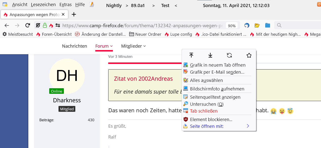Die Menüleiste bekommt natürlich noch ihre endgültige Farbe, ist z.Z. nur zur Verdeutlichung für mich, das ich im Nightly bin.
