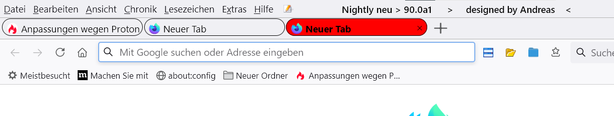 Ich habe 1 Code wegen Proton und einen älteren Code für die Tab-Bar und die Tabs Darstellung, die derzeit beide aktiv sind, da in beiden Elemente drin sind, die ich gern hätte...