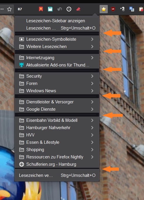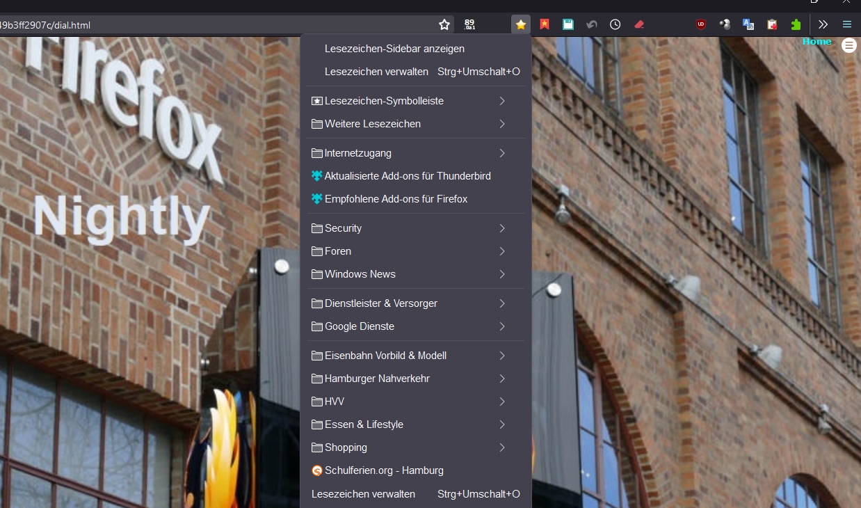 Nur beim Lesezeichenmenü bin ich am Stocken. Den Hintergrund und die Schriftgröße konnte ich anpassen.