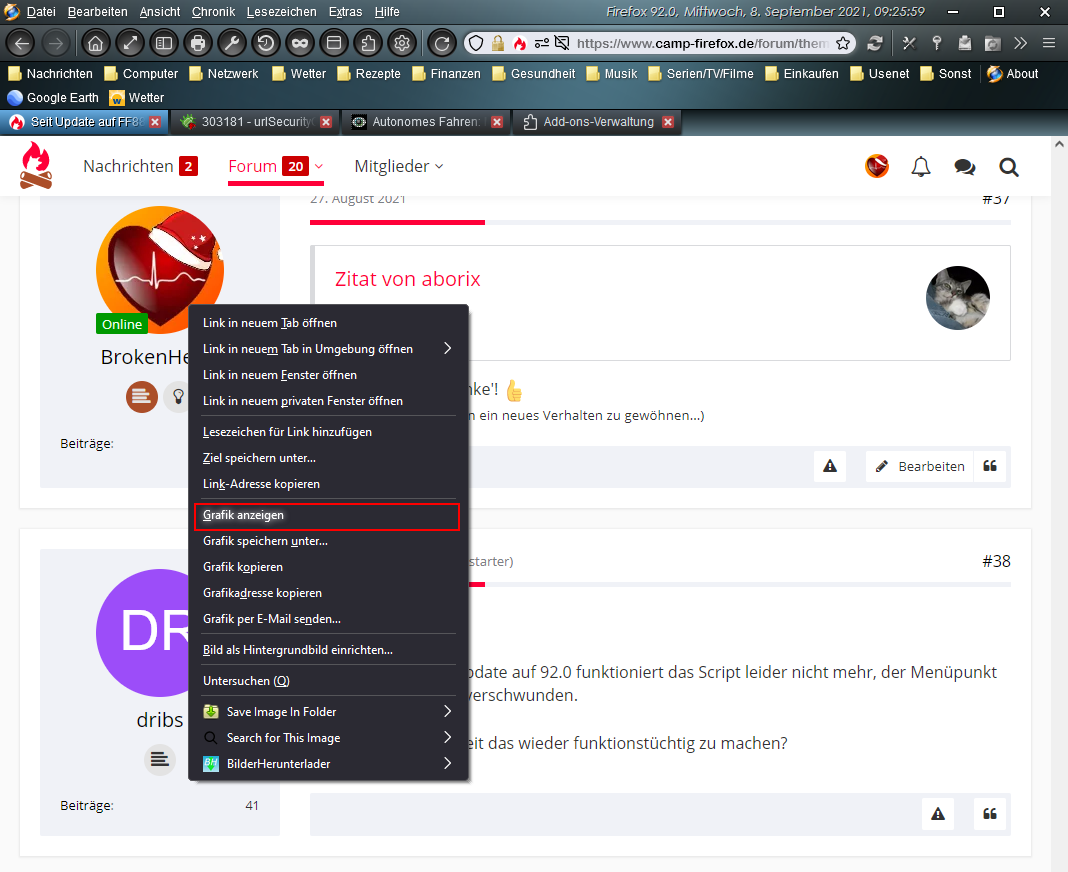Seit Update auf FF88 fehlt Menüpunkt "Grafik anzeigen"