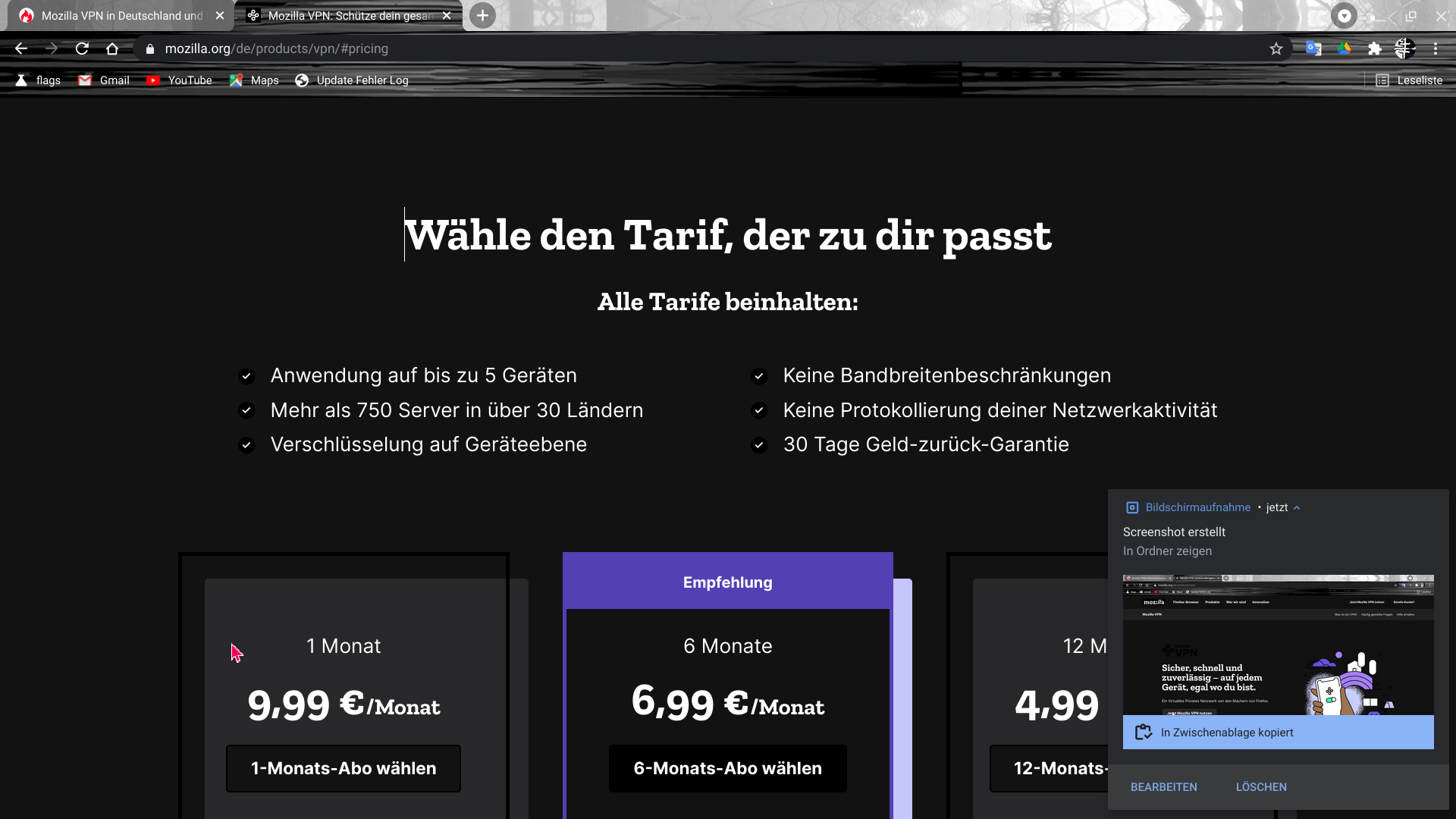 • Aber gleich den doppelten Monatspreis abrufen? Da hat Mozilla mich sehr enttäuscht.