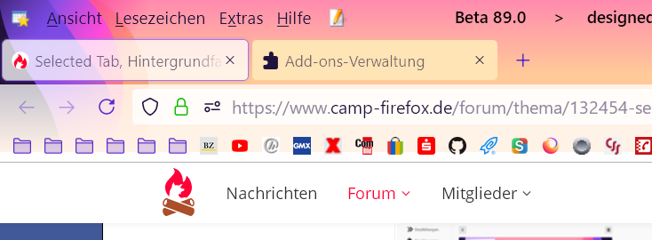 Bei der FF 89 Beta habe ich durch einen kleinen css.-Code die Hintergrundfarbe der nicht ausgewählten Tabs ändern können: