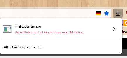 Wenn ich von der Seite https://mozhelp.dynvpn.de/dateien/index.php?path=Programme/ die Datei FirefoxStarter.exe runterlade, kommt in der Firefox 89 Beta Version der Hinweis: "Diese Datei enthält einen Virus oder Malware".....Was ist davon zu halten?