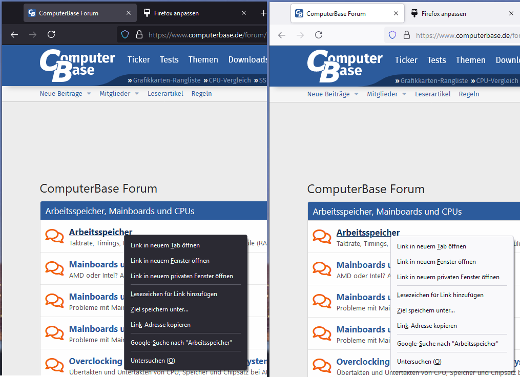 Siehe Bild mit FF Theme „Dunkel“