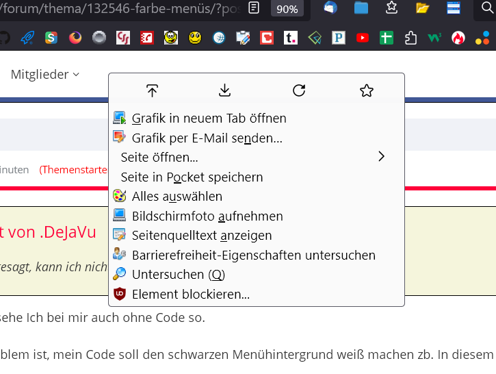 Das Problem ist, mein Code soll den schwarzen Menühintergrund weiß machen zb. In diesem dunklen Theme.