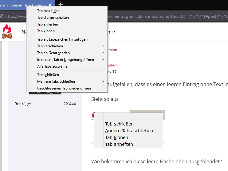 Mir ist aufgefallen, dass es einen leeren Eintrag ohne Text im Tab-Kontextmenü gibt.