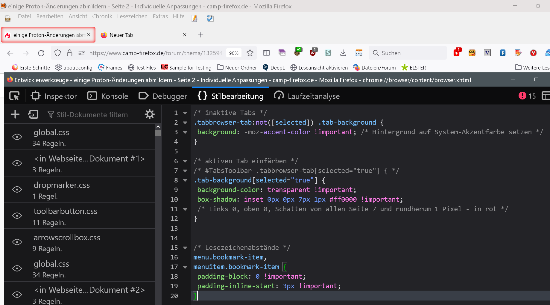 Damit wäre der Inhalt meiner Datei userChrome.css bereits komplett.