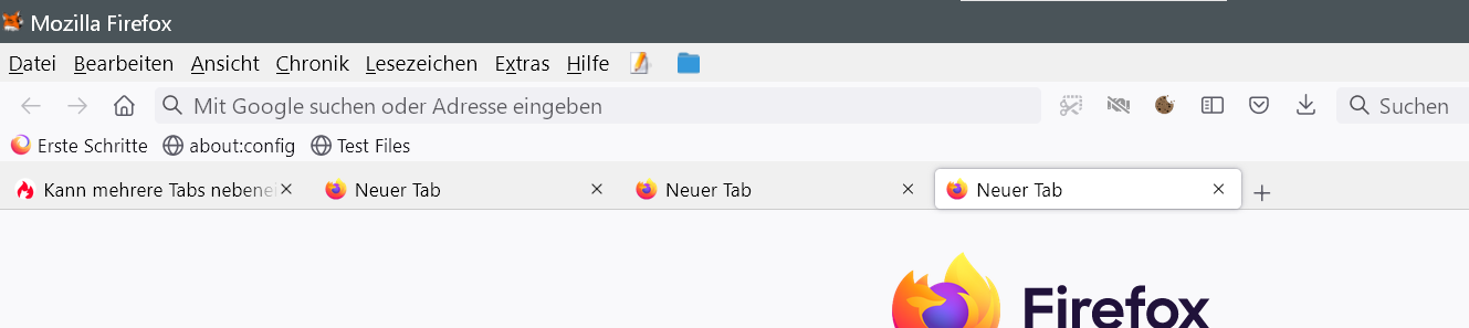 Jetzt erscheint der TAB am Seiten-Ende. Jedoch gibt es keine Möglichkeit, dass mehrere Tabs gleichzeitig geöffnet sind. Wenn ich auf "neuen Tab" klicke, dann wird eine neue Seite geöffnet, der bisher geöffnete TAB ist verschwunden. D.h. auch, dass ich nicht mehr mehrere HP-Seiten nebeneinander in einem Fenster geöffnet lassen kann. Weiterhin kann ich FF89 nur ein mal öffnen. Bisher konnte ich FF mehrmals jeweils in einem neuen Fenster öffnen. Auch das geht nicht mehr.