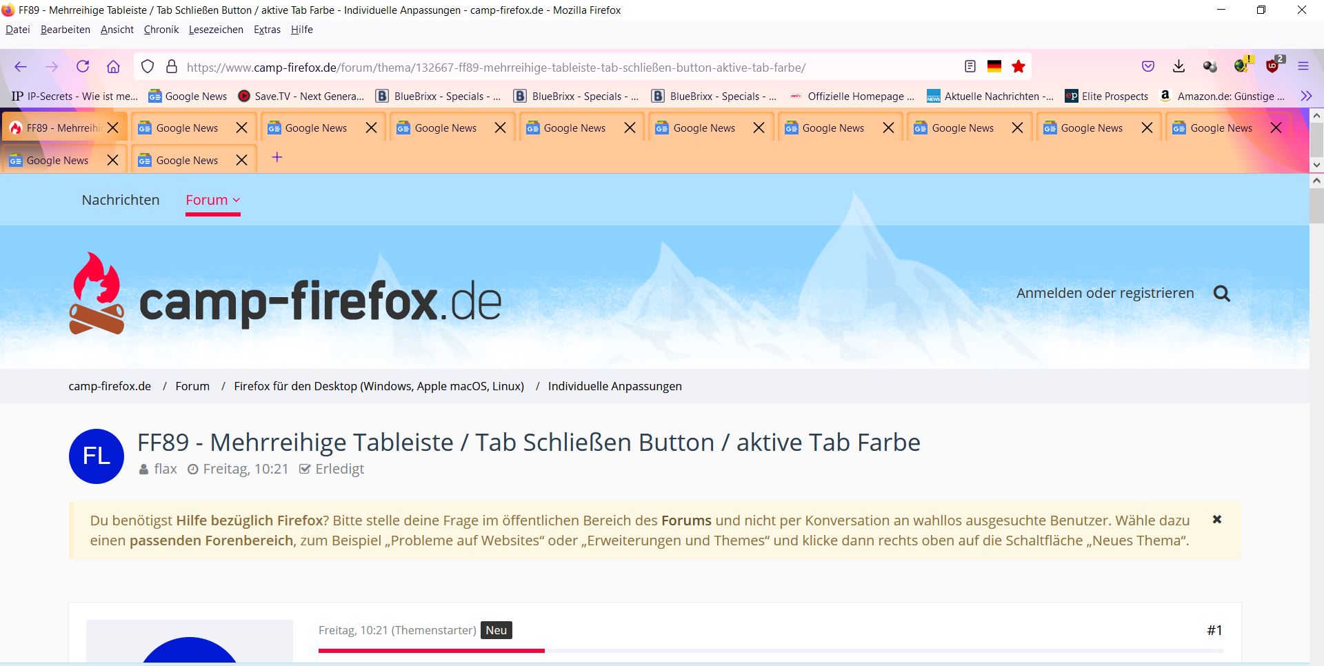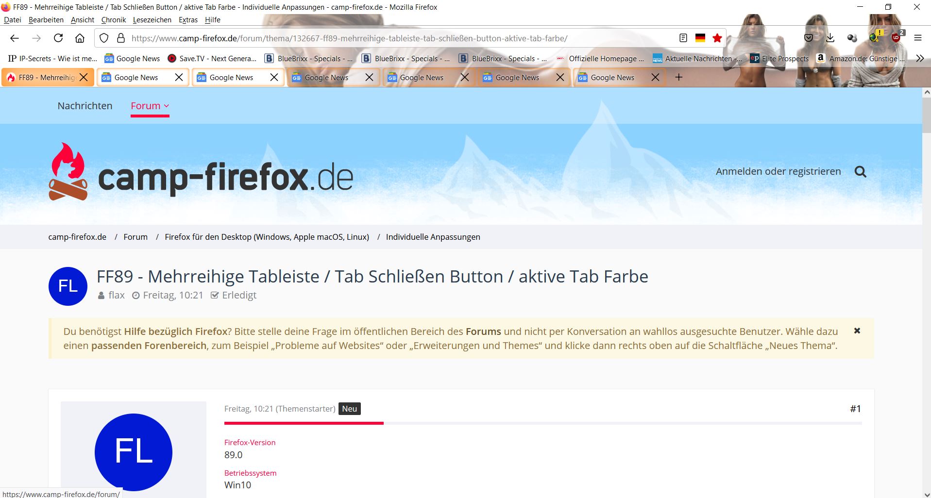 FF89 - Mehrreihige Tableiste / Tab Schließen Button / aktive Tab Farbe