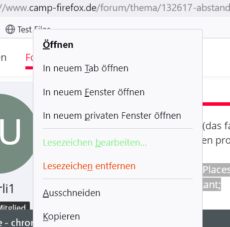 Lesezeichen-Sidebar - kann Kontextmenü in Version 89 geändert werden?